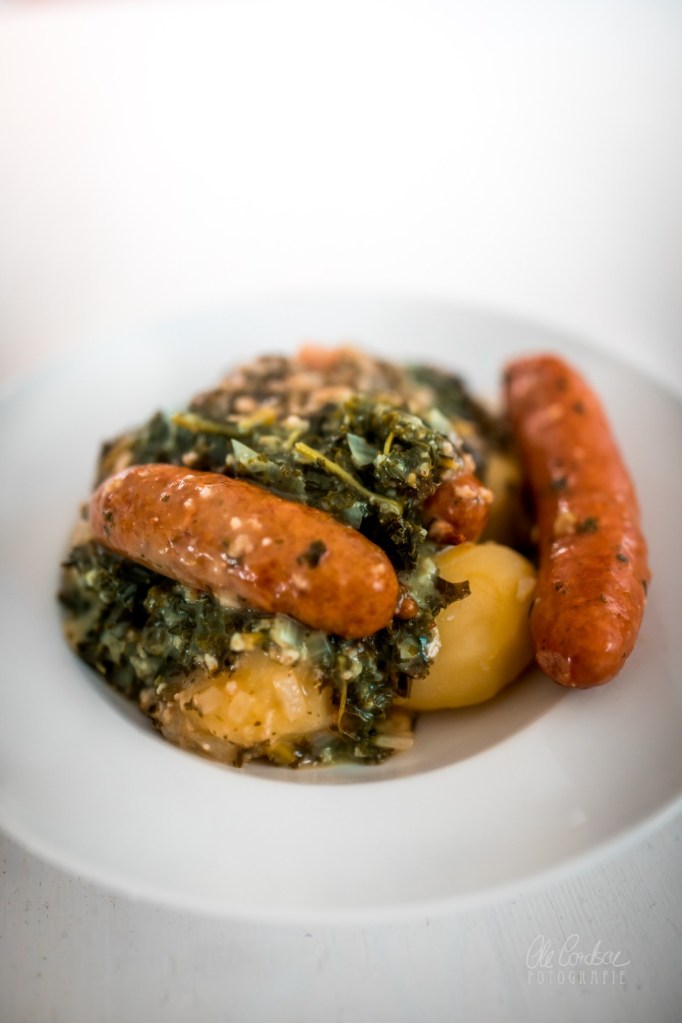 Darüber, wie er nun richtig zubereitet wird, streiten sich die Gelehrten und Ungelehrten zwischen Ijsselmeer und Schlei, zwischen Pott und Watt, genauso wie über die Frage, wer diese für den Magen herausfordernde Zubereitungsart des eigentlich so gesunden Kohls erfunden hat. Ohne Anspruch auf Authentizität, ohne Anspruch darauf, irgendwas besser als andere zu machen, verrate ich hier aber einfach mal, wie ich ihn gern koche – und esse. Wie ich ihn in Ostfriesland kennengelernt und mir anverwandelt habe, zusammengerührt aus verschiedenen Rezepten der Familie, von Großmüttern im Umkreis, und anverwandelt.