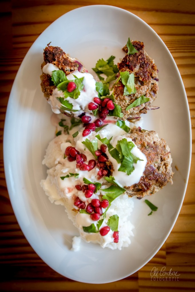 11 Gedanken zu “Mit Schafskäse gefüllte Frikadellen mit Reis, Joghurt-Orangen-Sauce und Granatapfelkernen”