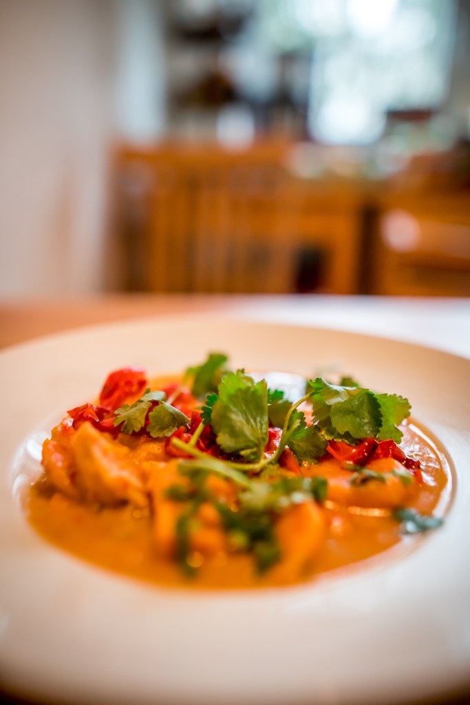 Am Ende mit Salz abschmecken (könnte auf etwa einen Teelöffel hinauslaufen) und mit frischem Koriander und/oder Thai-Basilikum servieren. Guten Appetit!