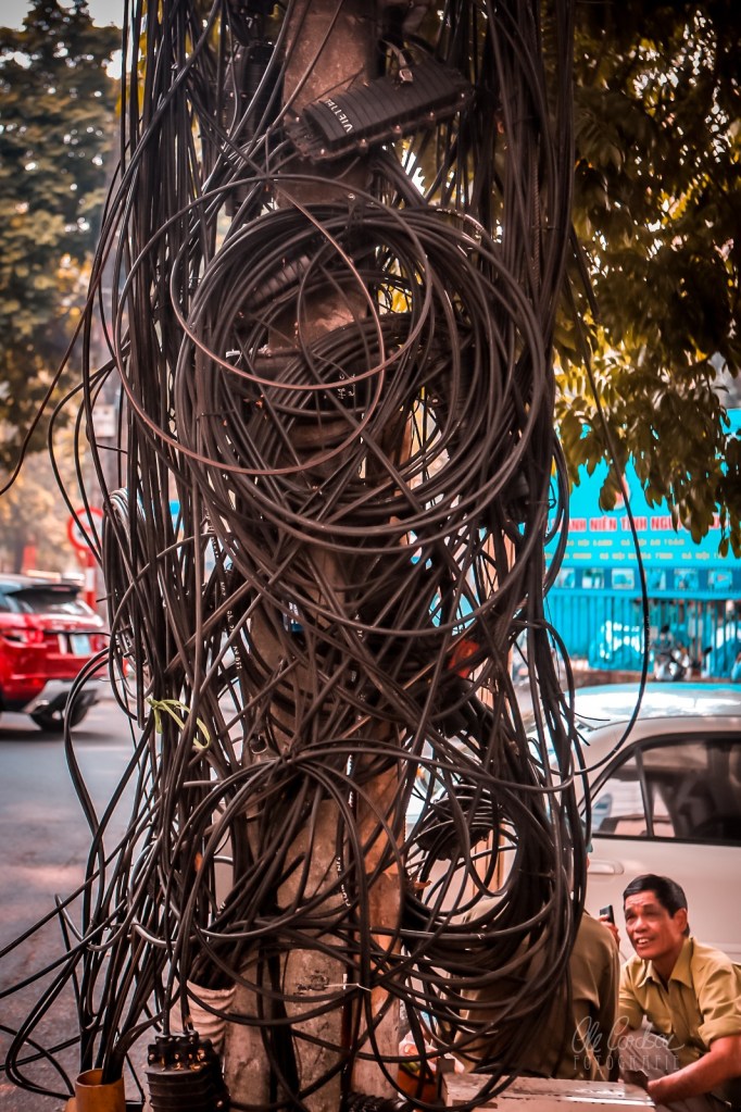 Die Altstadt von Hanoi ist ein Wimmelbild, gelebte Chaostheorie. Ein quirliger Mikrokosmos, der voller Halsketten hängt, die zu Abertausenden umherbaumeln, Handydisplay-Hüllen, Jeans, T-Shirts glitzern und knistern tonnenweise in Plastikfolie eingeschweißt. Hühnerschenkel brutzeln über Holzkohle, Schweinebauch wird in Karamell getränkt, Thai-Basilikum, Minze, Koriander, Zwiebeln, Wasserkresse, Okraschoten und Bittermelonen dösen in der Nachmittagshitze in Plastikschüsseln. Touristen, die allmählich aufgestanden sind, drücken ihre Nase im Lonely Planet platt, recken den Selfiestick in den Himmel als wollten sie auf der Stelle vom Blitz getroffen werden – oder irren den Handy-Empfehlungen von Tripadvisor hinterher, um die heißeste Imbissbude zu suchen. Nie zu vergessen: Motorräder knattern. Auf denen, die gerade nicht knattern und nur am Wegesrand stehen, fläzen sich mitunter Jungspunde, bieten ihre Taxidienste an und rufen „Motobai! Motobai?“ Sie sausen dann etwa zum Ho-Chi-Minh-Mausoleum, zum botanischen Garten oder dem Westsee mit seiner legendären Pagode. Dorthin, wohin man zu Fuß doch sehr lange unterwegs wäre. Stromkabel verknäueln sich an Masten und über die Straßen hinweg zu Dschungeln, bei denen man Stoßseufzer zum Himmel schickt: „Mein Gott, nie möchte ich hier Elektriker sein und Fehler finden müssen.“ Oder man steht einfach und staunt.