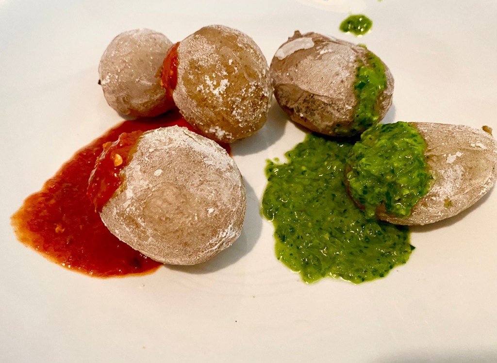 Mein Freund bekommt sie egal aus welchen Kartoffeln immer perfekt hin, ich dagegen nie. Aber auf mein Rezept für Blitz-Mojo-rojo (https://craterelle.wordpress.com/2022/01/16/blitzschnelle-mojo-rojo-kanarische-art/) schwöre ich.