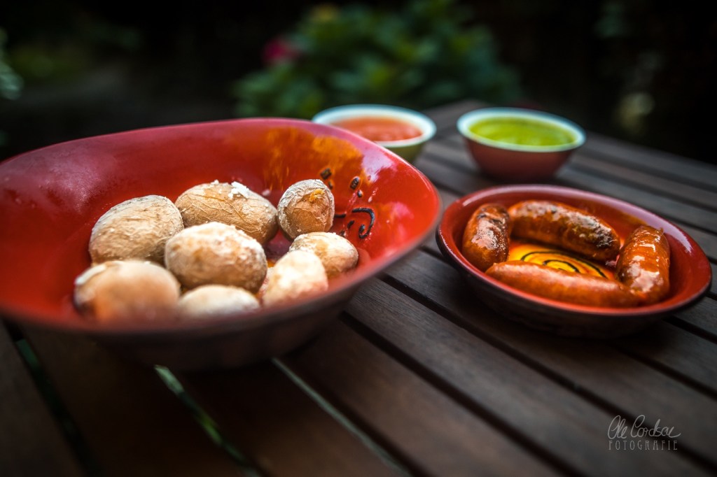 Für die Saucen im Zweifel die Gewürze anmörsern und ansonsten alle Zutaten gemeinsam in einen Mixbecher der Küchenmaschine oder einen hochwandigen Becher geben und glatt pürieren. Wer mag, kann sich dazu noch ein paar Chorizo-Würste grillen oder braten, beispielsweise. ¡Buen provecho!
