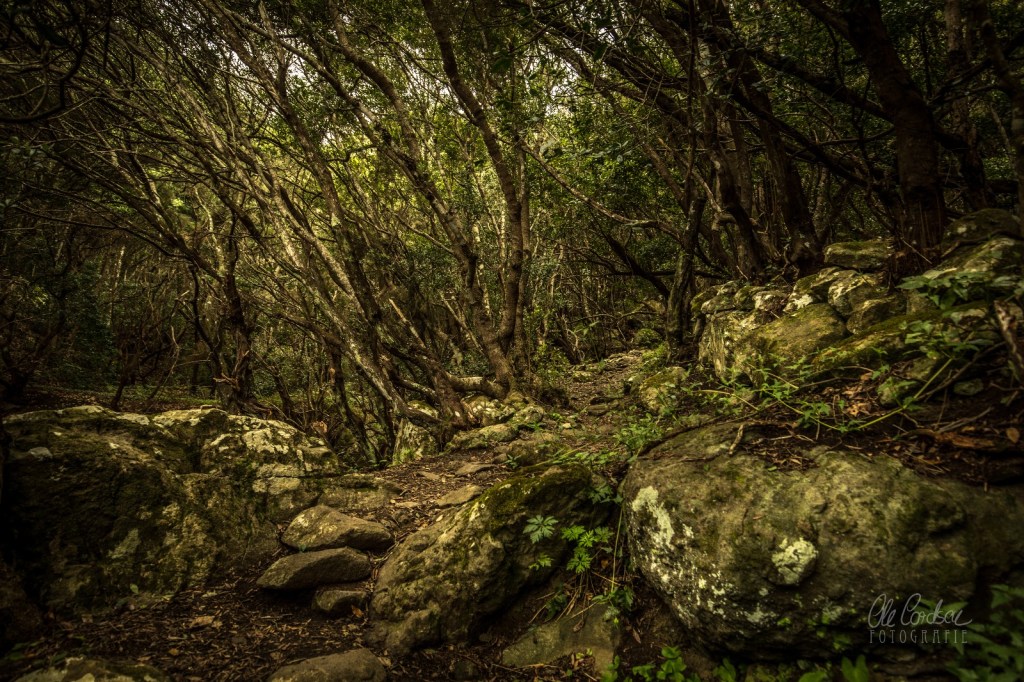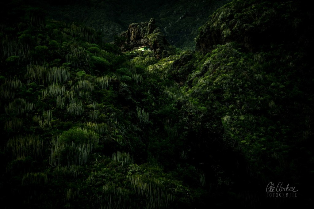 Dort oben, wo die Dächer längst verlassener Steinhütten eingestürzt sind und der Wind zusammengekauerten Moosen und Farnen den Marsch bläst, tänzeln Bergziegen durchs Dickicht, öffnen Regenwald und Gestrüpp, Kakteen und anderes Sukkulentendickicht sich immer wieder für atemberaubende Blicke auf den wilden Nordosten der Insel. Vom schmalen Berggrat schweigen die Blicke die Steilhänge abwärts bis zum Atlantik, der die Insel umgibt, wild wogt und gurgelt und gischtschäumend an den Felsspitzen leckt, die wie schwarze Raubzähne aus den Wellen aufragen. Und dort, kaum einen Meter vor dem Abgrund in eine Schlucht, habe ich Rotz und Schnotten geheult: tief berührt, als ich zwei Bilderrahmen fand, offenbar vor drei Wochen dort an Steine unterhalb einer vom Sturm zerzausten Palme gelehnt, eine Scheibe teils gebrochen, das Papier darin schon aufgeweicht, der Brief aus dem Passepartout gerutscht, angeknickt. Der Brief des liebenden Vaters, zwei Bilder seines Sohnes, der nur wenige Tage vor seinem siebten Geburtstag starb, ein Jahr später im herzzerreißend anrührenden Brief betrauert.