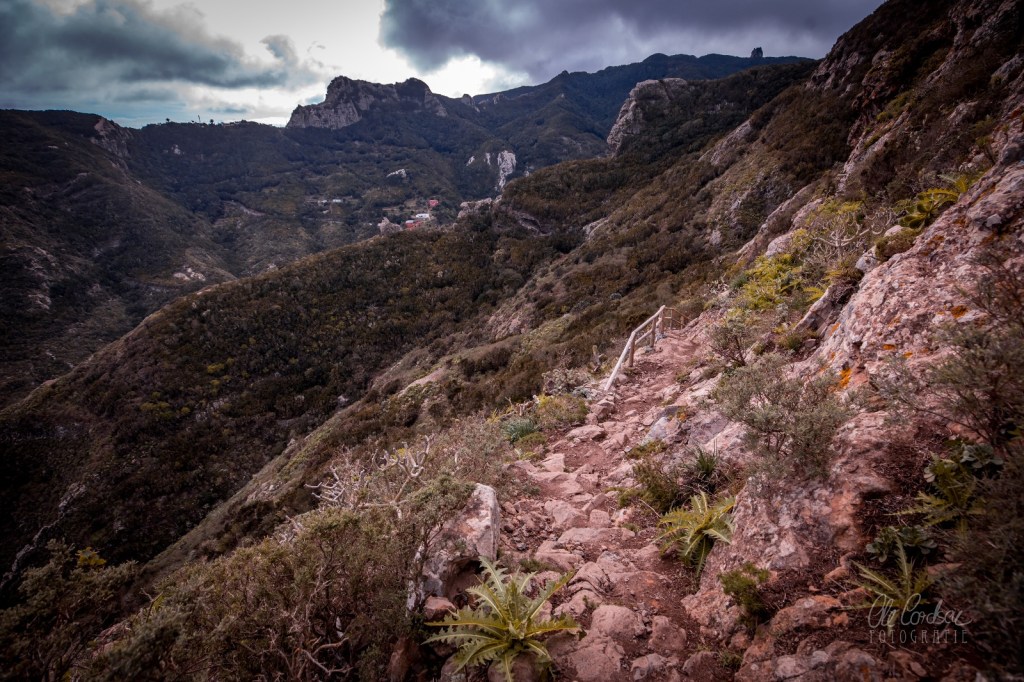 Und unweigerlich stellten sich Fragen. Was nur mag dem geliebten Sohn geschehen sein? Und warum brachte sein Vater die beiden mit so viel Liebe und Traurigkeit gefüllten Seiten Papier in Bilderrahmen ausgerechnet dorthin? In die felsige Einsamkeit des Anaga-Gebirges? An den Rand des Abgrunds am schmalen Felskamm des Montaña Tafada, wohin man ewig und nur mit stabilem Magen reist wegen all der Kurven, dort, wo es sich anfühlt wie das Ende der Welt? Warum gerade dort? Mochte der arme Kleine genau dort den Tritt verloren haben, „du bist viel zu eilig gegangen“, weggerutscht und abgestürzt sein? Hat er sich eben dort tödlich verletzt? Hat sich vielleicht auch der Vater selbst nach dem Absetzen der Bilderrahmen mit seinem Brief in eben diesen Abgrund geworfen, damit sein geliebter Sohn ihm Hand in Hand sein kleines Reich jenseits des Regenbogens zeigen kann und sie wieder vereint sind? War dies ein Abschiedsbrief?