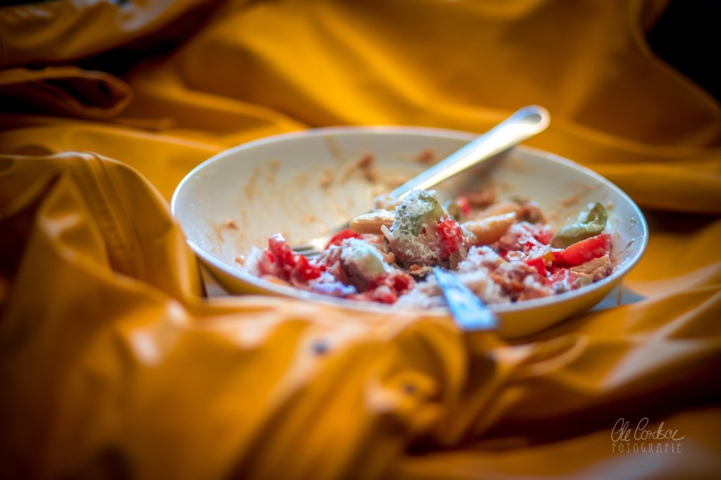Sie schnitt Zwiebeln fein, presste Knoblauch hinzu, ließ Salz und Pfeffermühlen kreisen, spritzte Balsamico hinzu, rieb Parmesan, warf noch etwas Mascarpone hinein. Und sie füllte einen riesigen Stahlkessel mit Wasser, ging in die Speisekammer, wo sie ihre eigene Pasta in Gläsern aufbewahrte, und sie warf eine ordentliche Ladung ins zwischenzeitlich gesalzene Gebrodel. Und es schäumte kurz, ehe die zeigefingerdicken Röhrchen umhergewirbelt wurden wie im Karussell, rauf und runter und kreuz und quer, bis ihnen schwindelte und ihre Knie und Körper schlotterten und weich wurden.