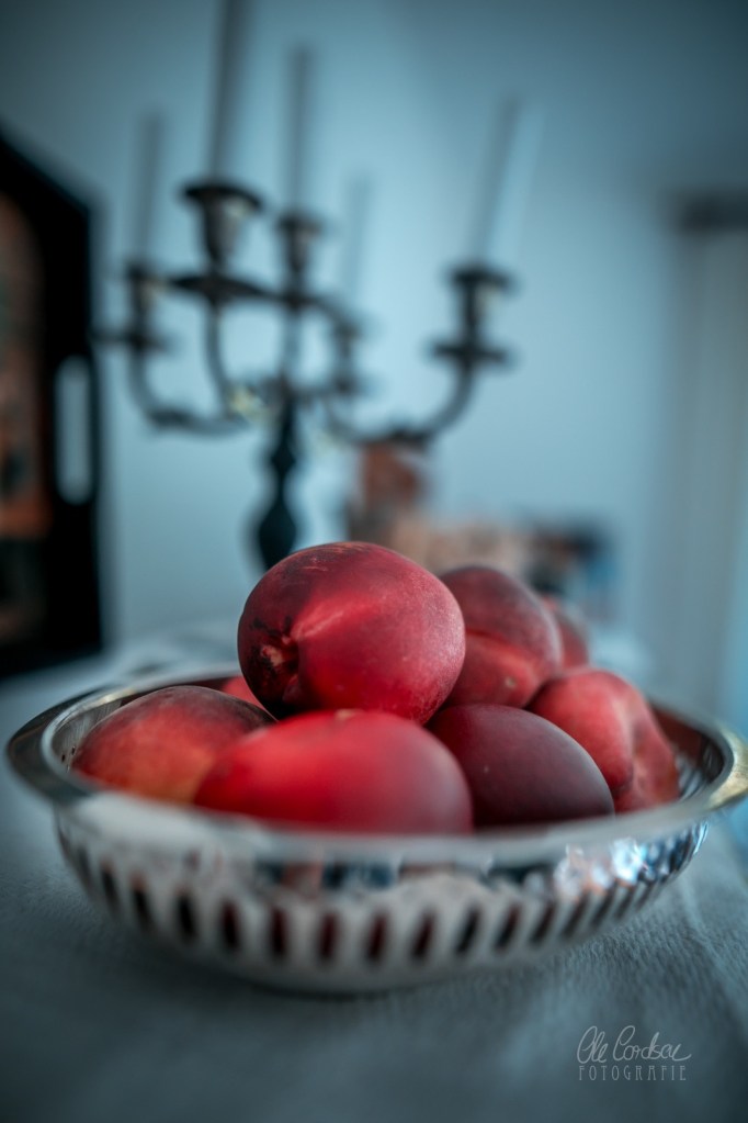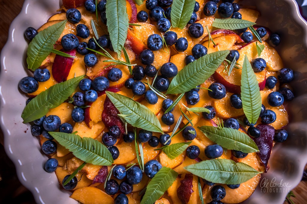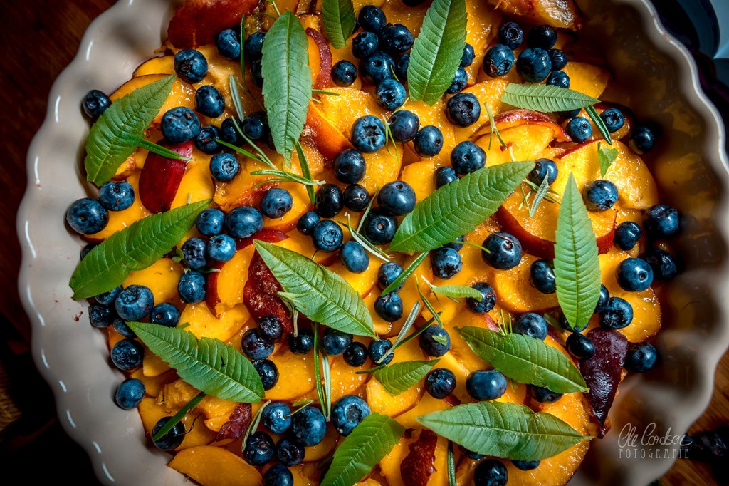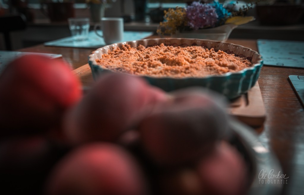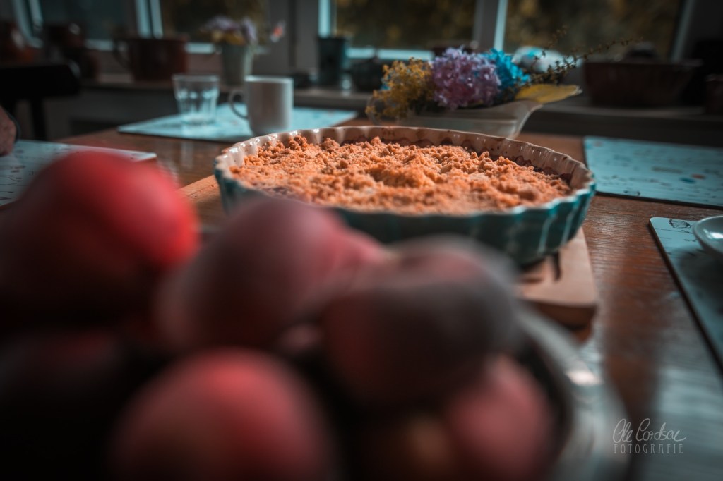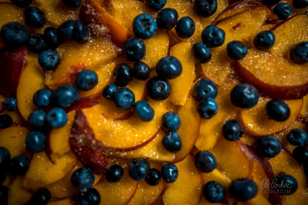 ich glaub ich muss direkt in die Küche Crumble backen….Pfirsiche bzw. Nektarinen hab ich da. Und Blaubeeren.