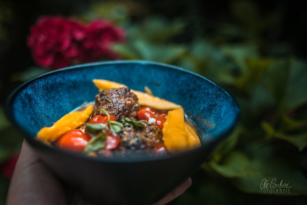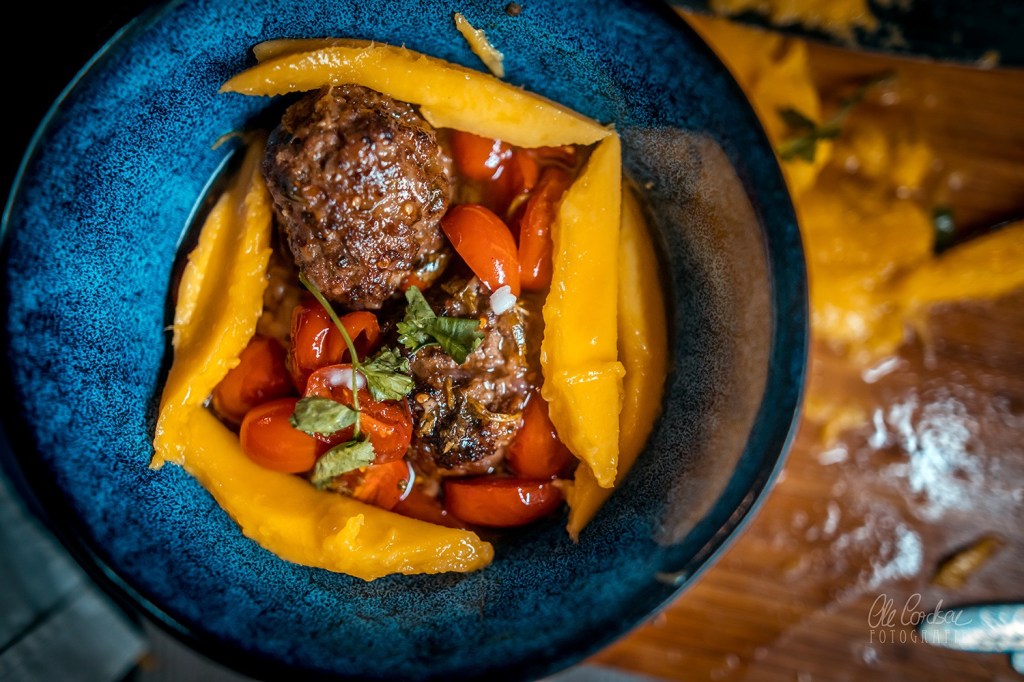 Fleischbällchen in vogelwild: Indische Kofta mit Mango-Limetten-Tomatensauce