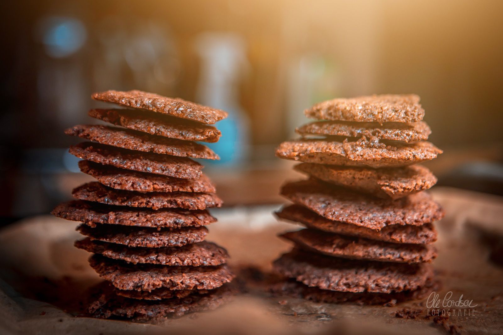 Schokolade ist zartschmelzendes Glück. Und diese knuspernd krachenden Cookies, deren Aromen durch einen Hauch zarter Meersalzflocken noch konturierter werden, sind zu gut, um mit dem Vernaschen zu warten. Ein Rezept zum Niederknien, von der Sterneköchin Tanja Grandits entlehnt. Perfekt für triste Herbsttage, die man in Wolldecken auf dem Sofa zubringt, während draußen Böen an den Bäumen reißen und Regen gegen die Fenstescheiben prasselt.