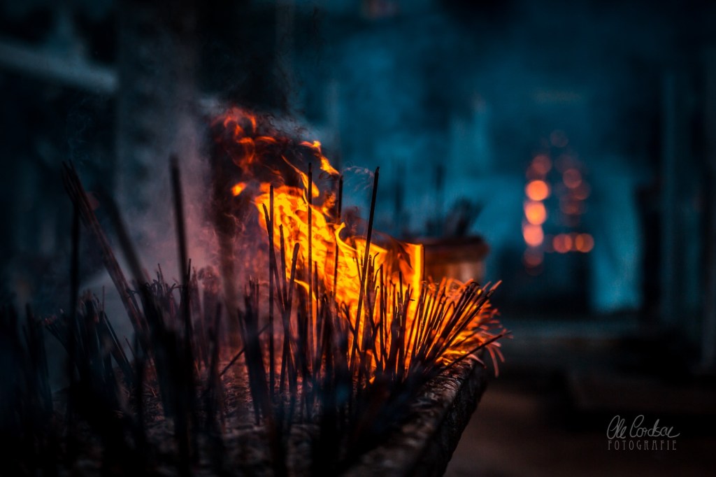 Und doch ist ähnlich nachdrücklich hängen geblieben, was ich nach dem Besuch der buddhistischen Heiligtümer zurück in der Kleinstadt erlebt habe. Denn plötzlich wehten die tropischen Böen plötzlich wilde Trommelwirbel zu mir herüber, die seltsam metallisch klangen. Wie ein stählernes Schlagzeugsolo, aber andauernd. Zwischen Klangklangklongklack und Ratatatatatatatatatat. Metall auf Metall. Kurz überdröhnt von vorbeiknatternden Tuktuks.