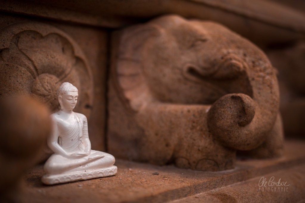 Die Füße: kross gegart vom Barfußlaufen auf dunklen Steinen, auf die den ganzen Tag über die Sonne gesengt hatte. Das Hirn: überwältigt von den Erlebnissen rund um die gigantischen Stupas, die in Anuradhapura, der einstigen Königsstadt Sri Lankas, emporragen wie riesige Käseglocken, wie Mondhalbkugeln, die irgendwer vergessen hatte zusammenzubauen, und die – so unheilig der Vergleich sein mag – auch etwas an Loriots „Familienbenutzer“ erinnern.