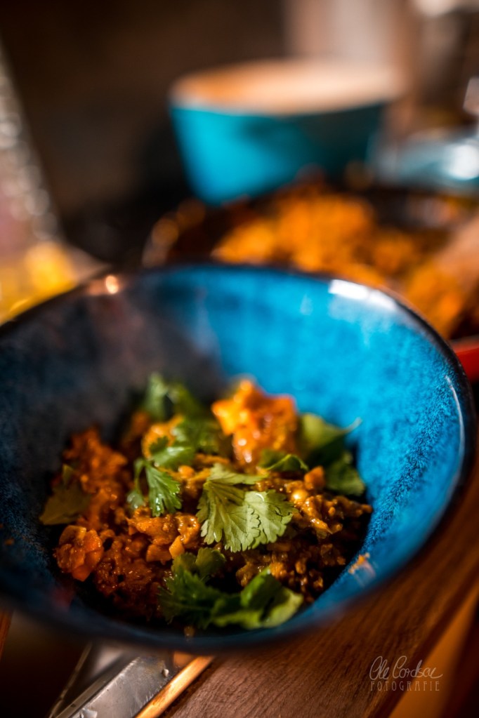 Genau diese fantastische Variante gibt es heute für Euch als Teil der Aktion „Currys der Welt„, die die wunderbare Zora gemeinsam mit Cornelia vom Blog SilverTravellers ausgeheckt hat. Das Curry dafür kann man übrigens prima ein bis zwei Tage vorher zubereiten, dann kann es noch durchziehen und seine Aromen weiter entfalten, das Brot bevorzuge ich frisch, man kann es aber natürlich auch schon einen Tag vorher backen (viel länger würde ich nicht warten, weil es irgendwann auch unter der Knusperkruste trocken und hart wird.