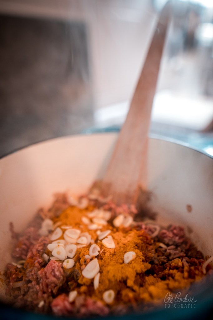 Das Rinderhack-Curry zubereiten