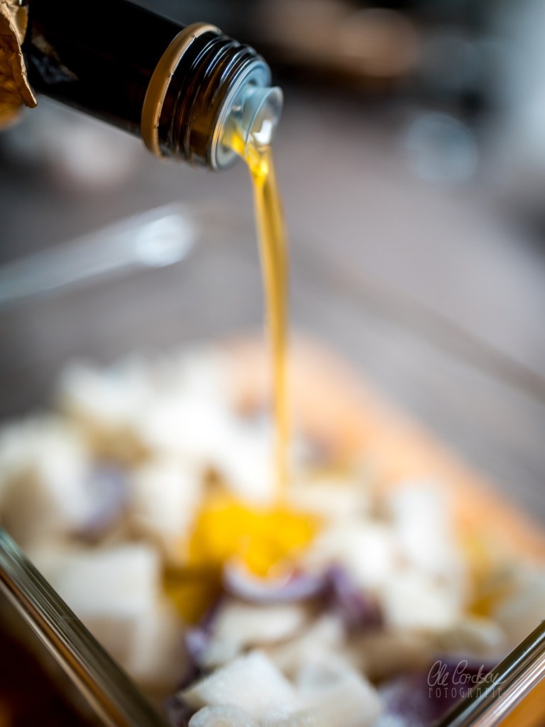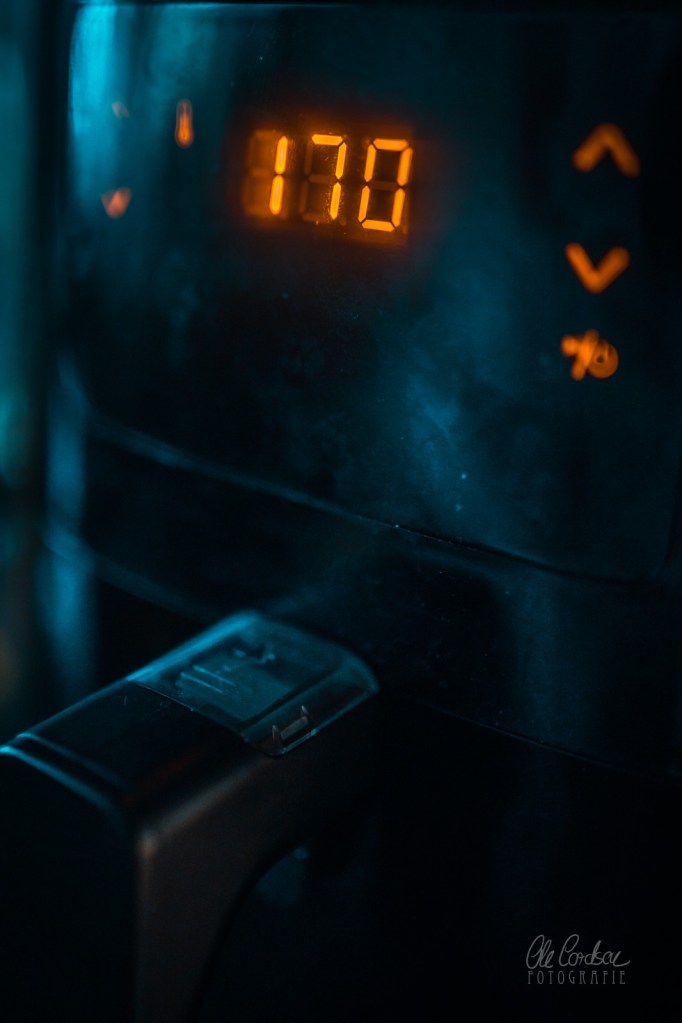 Zubereitung samt Warten auf den Ofen: etwa 35 Minuten, reine Schnippelzeit: vielleicht 5 Minuten
