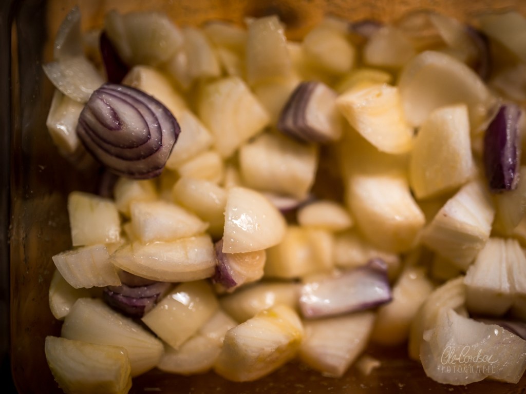 600 Gramm Zwiebeln, gehäutet, in grobe Würfel geschnitten